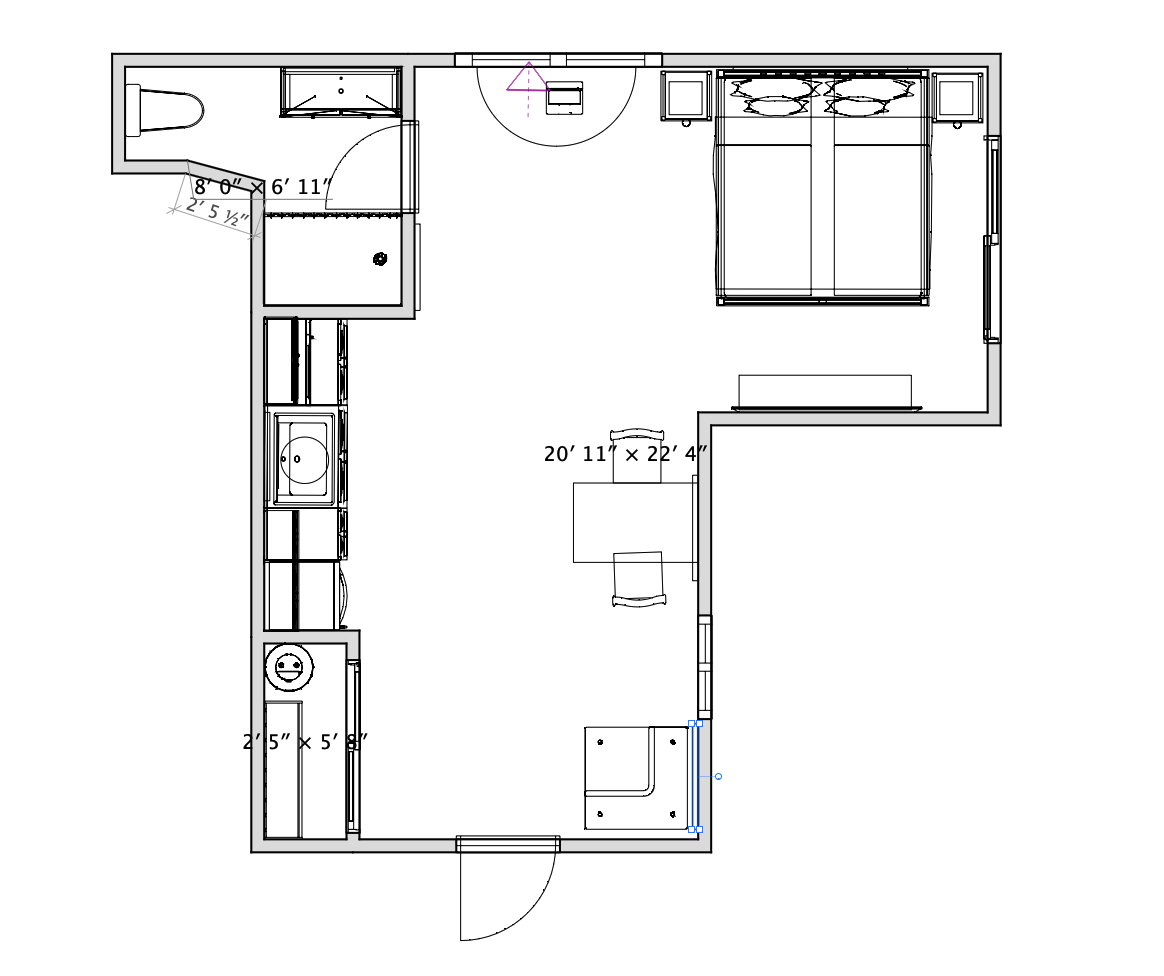 Add 8 x 10 room and add the 4′ from the garage, makes the space very usable. Here’s one layout idea.